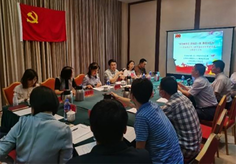 參觀后,4 個黨支部齊聚會議室,由濱海新區(qū)區(qū)委組織部高層次人才服務(wù)室黨支部書記劉建輝主持召開了座談會。宏亞公司黨支部書記岳琳領(lǐng)學(xué)了習(xí)近平總書記關(guān)于加強職業(yè)教育的重要指示批示精神,介紹了全國先進(jìn)地區(qū)職業(yè)教育考察情況及項目進(jìn)展情況。濱建投項管公司黨支部書記楊程交流了濱海新區(qū)黃港生態(tài)區(qū)職業(yè)教育產(chǎn)業(yè)園入園院校進(jìn)展情況,劉建輝介紹了濱海新區(qū)職業(yè)教育基地建設(shè)展望。在交流研討中,宏亞公司咨詢?nèi)坎块L高淑玲回答了大家比較關(guān)心的入園院校數(shù)量、政府政策支撐、資金平衡方式等方面的情況。