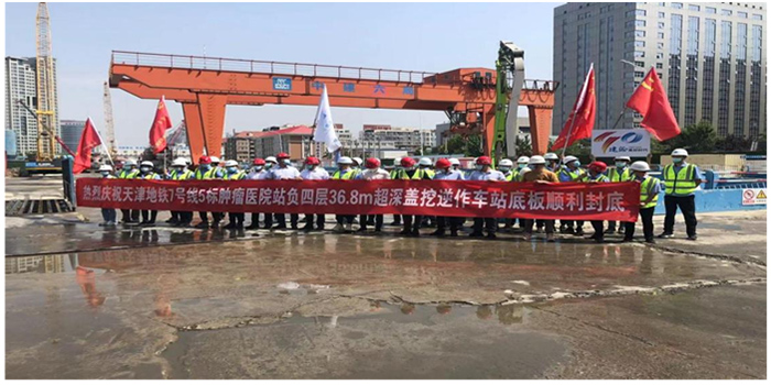 近日,天咨下屬監(jiān)理公司參建天津地鐵7號(hào)線項(xiàng)目腫瘤醫(yī)院站地下四層蓋挖車站順利封底。天津地鐵7號(hào)線項(xiàng)目腫瘤醫(yī)院站采用蓋挖逆作法,基坑深36.8米,與既有5、6號(hào)線腫瘤醫(yī)院站換乘。在施工過程中攻克了富水軟土地層70m超深地連墻、雙機(jī)抬吊長26.95米鋼管柱插入超緩凝混凝土灌注樁的施工難題,提前兩個(gè)月完成了圍護(hù)結(jié)構(gòu)封閉的施工,經(jīng)聲波透射法檢測(cè)及地連墻質(zhì)量評(píng)定,74幅地下連續(xù)墻均達(dá)到Ⅰ類墻,40根混凝土灌注樁均為Ⅰ類樁;刷新了地連墻、超緩凝灌注樁鋼管柱施工天津市紀(jì)錄。