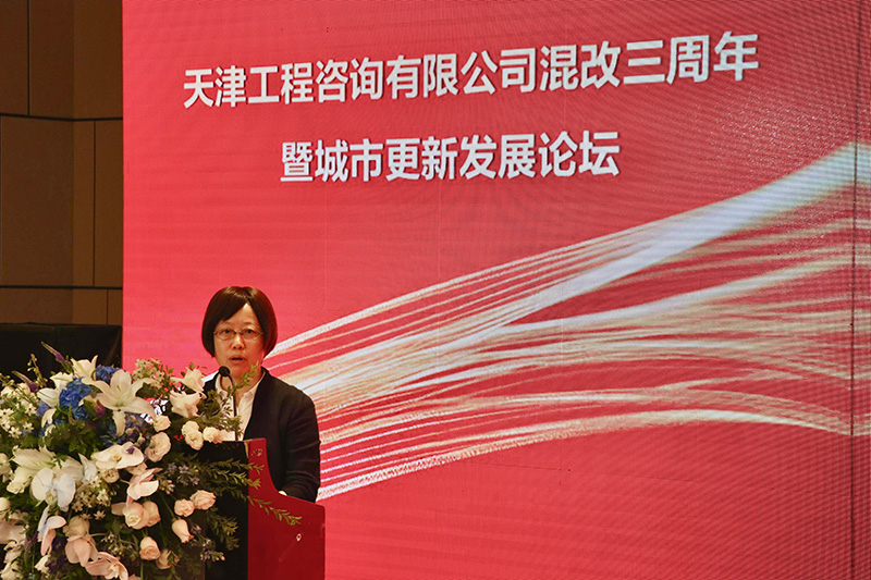 天津市國資委改革處副處長袁薔致辭。代表市國資委向天津咨詢混改三周年表示祝賀,也向關(guān)心和支持天津國資國企改革發(fā)展的各界朋友表示感謝。天津咨詢混改三年引進了先進的管理理念和經(jīng)營機制,實現(xiàn)了國有資產(chǎn)的保值增值,扎根天津、服務(wù)天津,加深了津滬兩地國資國企之間的合作與共贏。希望天津咨詢保持向好發(fā)展。不斷拓寬經(jīng)營思路,健全經(jīng)營機制,努力挖掘自身優(yōu)勢,提高企業(yè)核心競爭力,為混改后天津國資參股企業(yè)保持更好更快發(fā)展樹立典型。希望天津咨詢服務(wù)天津發(fā)展。主動融入和服務(wù)“十項行動”,持續(xù)推進“三新”“三量”工作,抓住有利時機,充分發(fā)揮在城市更新、資產(chǎn)盤活等方面的咨詢技術(shù)優(yōu)勢,為天津的城市建設(shè)和經(jīng)濟發(fā)展“添秤”。希望天津咨詢發(fā)揮紐帶作用。繼續(xù)穩(wěn)步推進改革,將上海國企的先進理念引入天津,進一步發(fā)揮好上海國資和天津國資之間的紐帶作用,為推動雙方互利共贏做出積極貢獻。