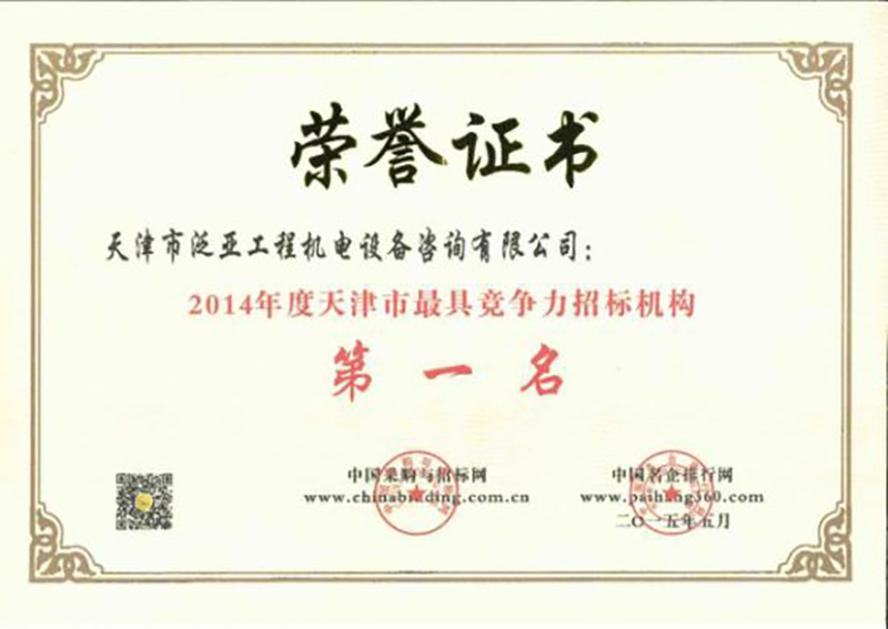 2014年度天津市最具競爭力招標(biāo)機構(gòu)第一名