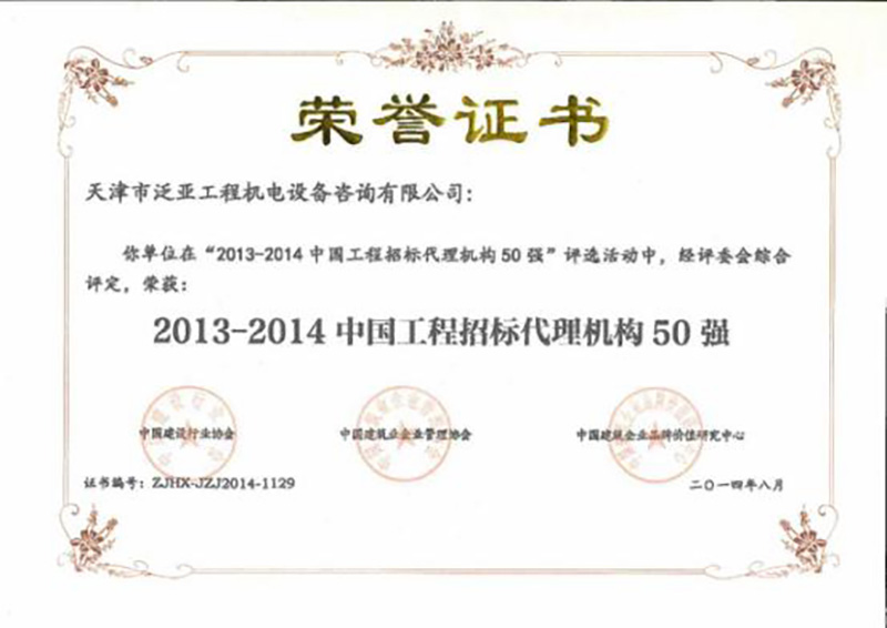 2013-2014中國(guó)工程招標(biāo)代理機(jī)構(gòu)50強(qiáng)