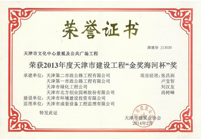 建設(shè)工程金獎海河杯(2013年)