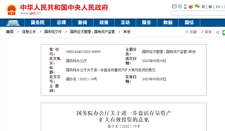 國務(wù)院辦公廳關(guān)于進(jìn)一步盤活存量資產(chǎn)擴大有效投資的意見
